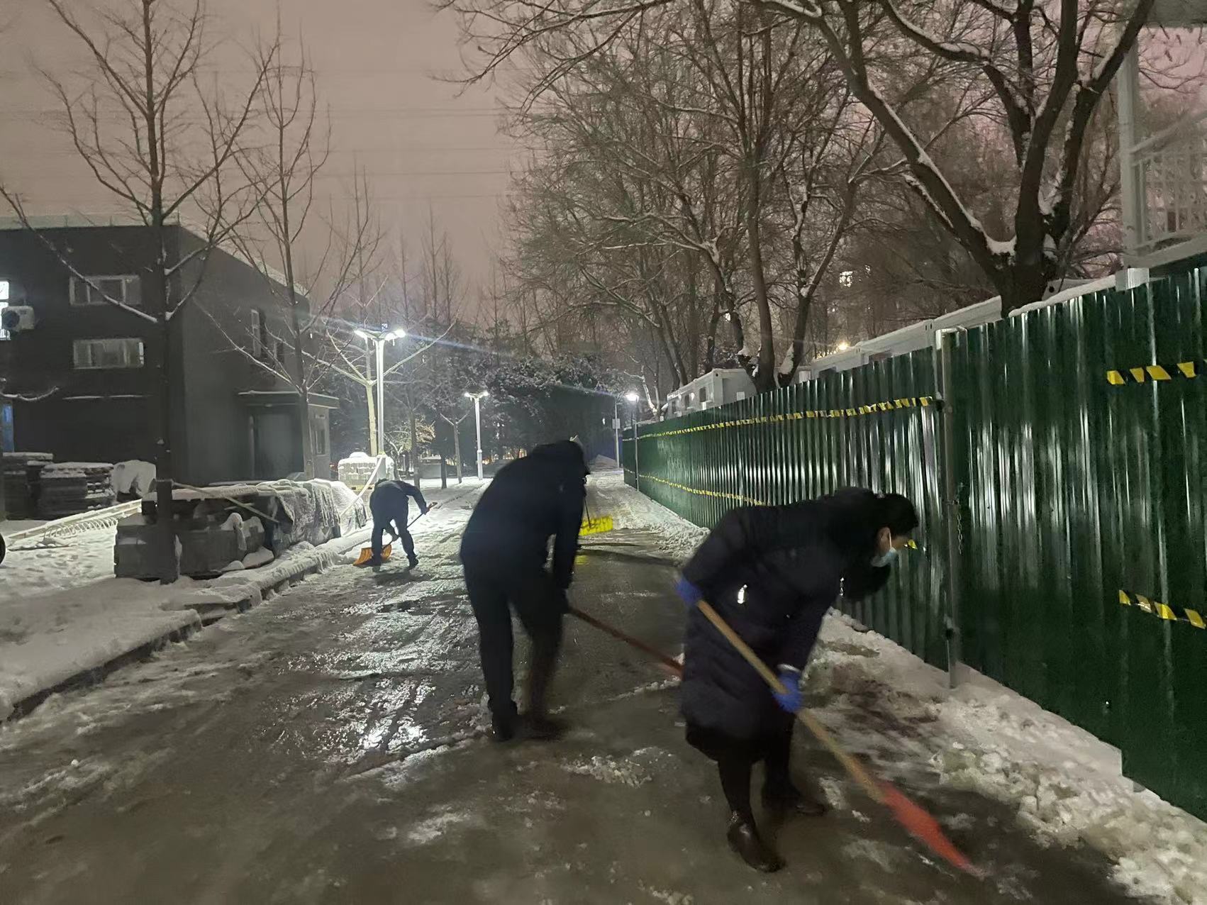 后勤基建處綜合辦公室積極做好掃雪工作,清理路上積雪,保持道路通暢