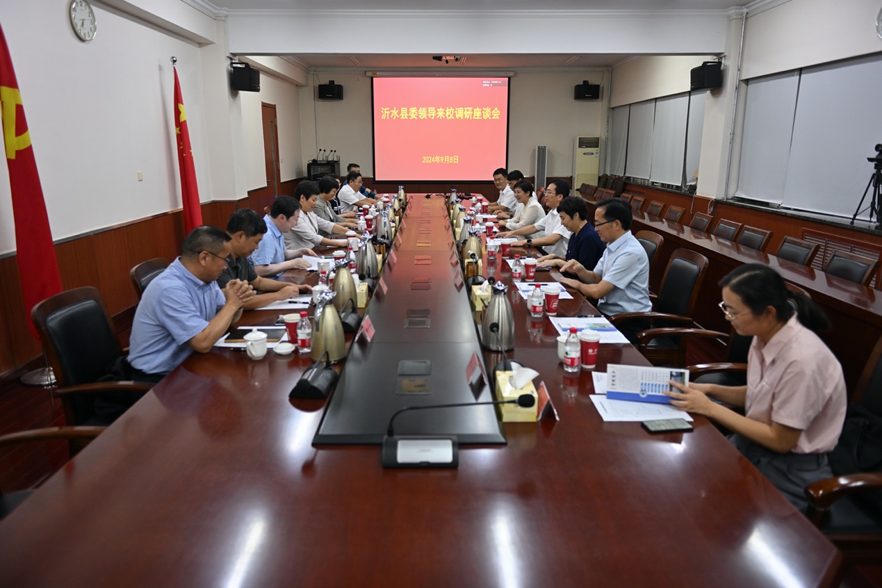 9月8日下午,山東省沂水縣縣委書記陳士賢一行8人來校調研交流。學校黨委書記劉穎出席調研會。黨委副書記雷京,黨委常委、副院長靳海波陪同調研。