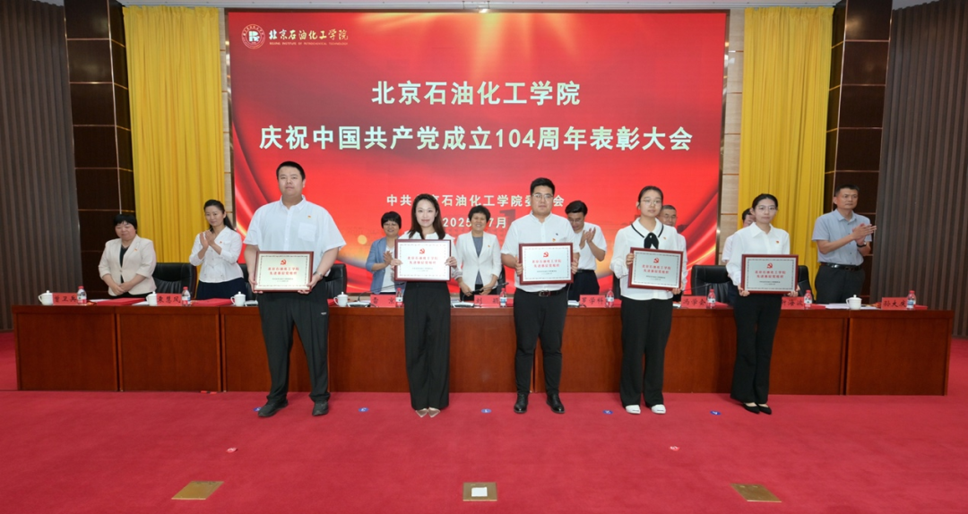 黨委副書記雷京宣讀了《2024年教育部和北京高校黨建“雙創”培育創建單位》名單,黨委副書記馮學會宣讀了《中共北京石油化工學院委員會關于表彰優秀共產黨員、優秀黨務工作者和先進基層黨組織的決定》。參會校領導為受表彰集體和個人頒發了獎牌、獎章和證書。