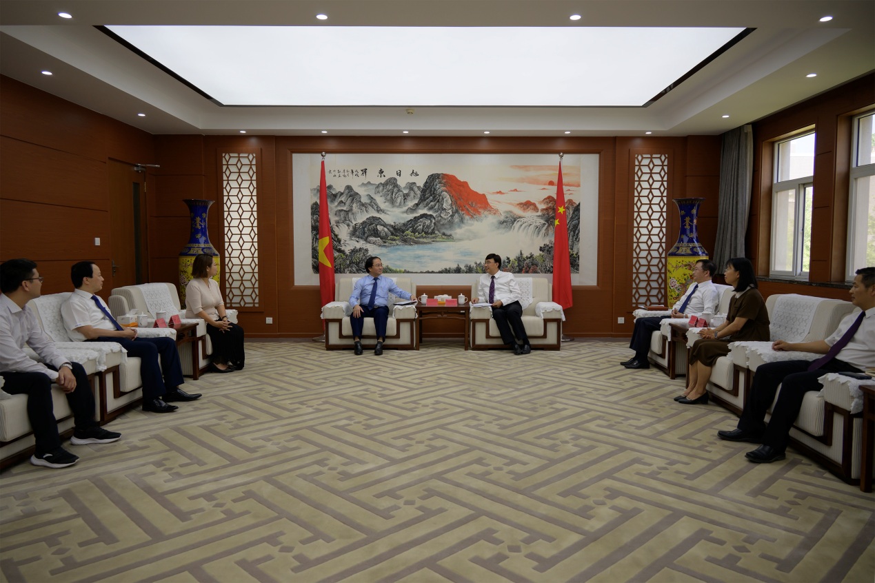 羅學(xué)科首先對(duì)陳春長(zhǎng)書(shū)記一行來(lái)訪表示歡迎。他表示,中越兩黨和兩國(guó)政府在“一帶一路”倡議和“兩廊一圈”框架合作方面有廣泛共識(shí),交流互鑒、共謀發(fā)展,符合兩國(guó)共同利益。北京石油化工學(xué)院和河內(nèi)礦業(yè)與地質(zhì)大學(xué)地處各自國(guó)家首都,與能源礦業(yè)領(lǐng)域關(guān)系密切,都是以工科為主的多學(xué)科性大學(xué),有著許多共同的學(xué)科專業(yè)領(lǐng)域。盡管兩校辦學(xué)歷史和發(fā)展階段不同,但有著共同的辦學(xué)理念和相近的發(fā)展愿景。他希望雙方未來(lái)加強(qiáng)交流合作,在教育發(fā)展理念、人才培養(yǎng)模式、教育教學(xué)改革和學(xué)校發(fā)展路徑等方面互鑒辦學(xué)經(jīng)驗(yàn),在漢語(yǔ)和專業(yè)人才培養(yǎng)、教師培訓(xùn)、人員互訪、學(xué)術(shù)研究、資源共享等方面開(kāi)展務(wù)實(shí)合作,共同推進(jìn)教育事業(yè)發(fā)展,為中越友好關(guān)系和兩國(guó)發(fā)展做出更大貢獻(xiàn)。