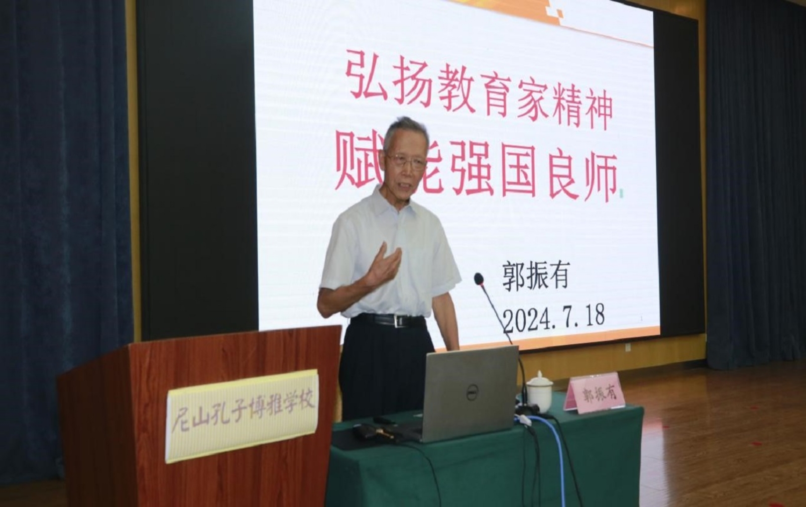 郭振有以其豐富的教育閱歷和濃厚的教育情懷,作題為《弘揚教育家精神 賦能強國良師》的開班報告,全面深刻地解讀了教育家精神提出的背景和豐富內涵,殷切期望新時代的教師要努力提升政治素養、道德素養、專業素養,要傳承經典、修身養性、提高技能、為國育才。