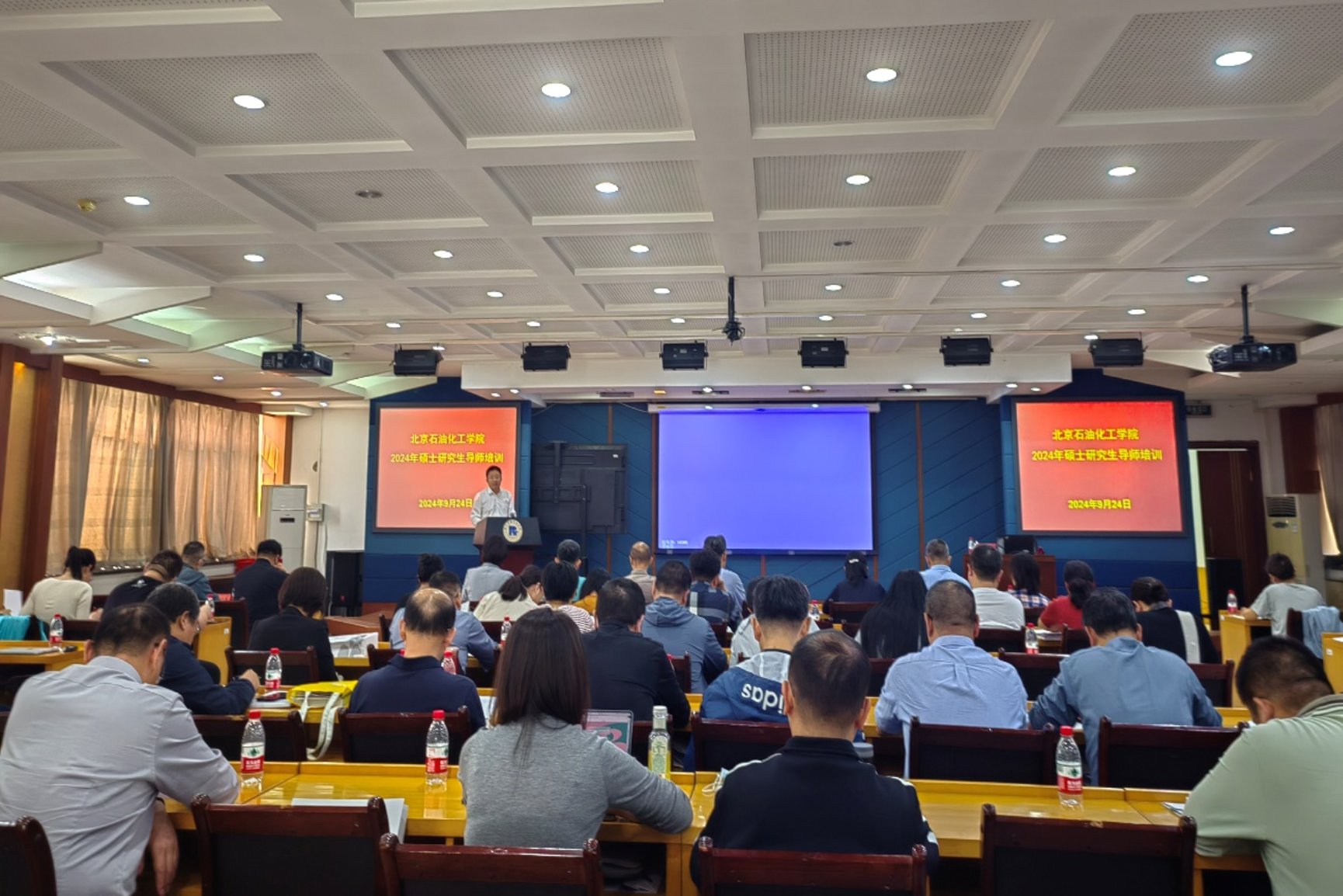 為進一步弘揚和踐行教育家精神,強化落實導(dǎo)師立德樹人根本職責(zé),提升研究生培養(yǎng)質(zhì)量,北京石油化工學(xué)院于9月24日-27日舉辦2024年碩士研究生指導(dǎo)教師培訓(xùn)。2023年第二批新聘校內(nèi)碩士研究生指導(dǎo)教師以及各學(xué)院分管研究生副院長、學(xué)科帶頭人、學(xué)科方向帶頭人、研秘、學(xué)科秘書、研究生處全體教師參會。本次培訓(xùn)采取專家報告和政策解讀相結(jié)合的方式進行,邀請清華大學(xué)、北京理工大學(xué)、北京建筑大學(xué)等高校專家作專題講座。培訓(xùn)會由研究生處副處長張堯斌主持。