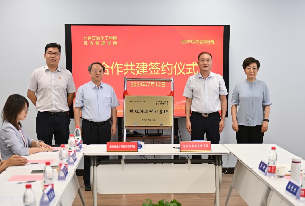 7月12日上午,北京石油化工學院經濟管理學院與北京市大興區審計局舉行合作共建協議簽約暨校地共建研習基地揭牌儀式。