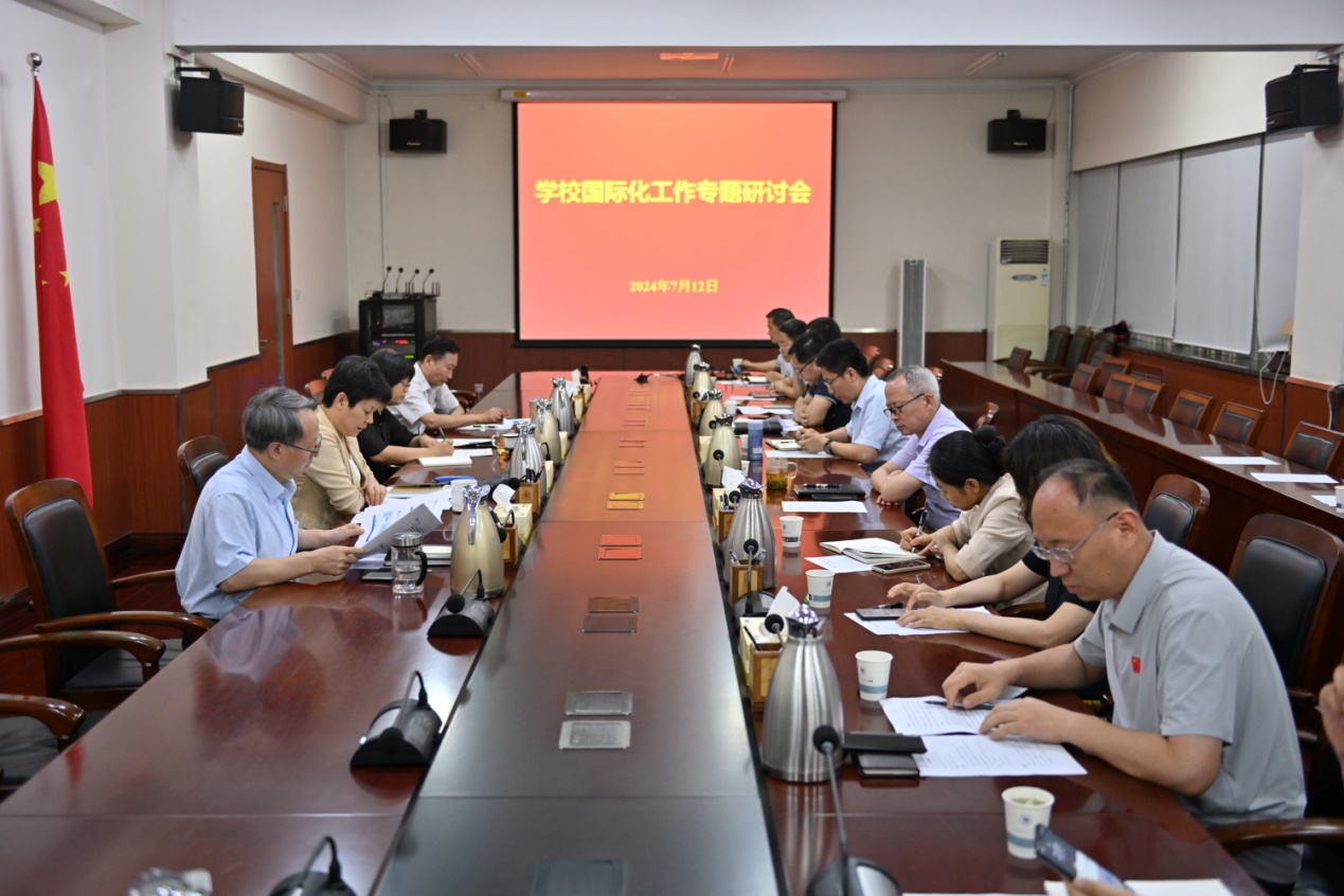 7月12日下午,北京石油化工學院于第一會議室召開學校國際化工作專題研討會,學校黨委書記劉穎主持會議。黨委副書記雷京,黨委常委、副院長陳家慶,院長助理兼國際合作與交流處處長丁福臣參加會議。