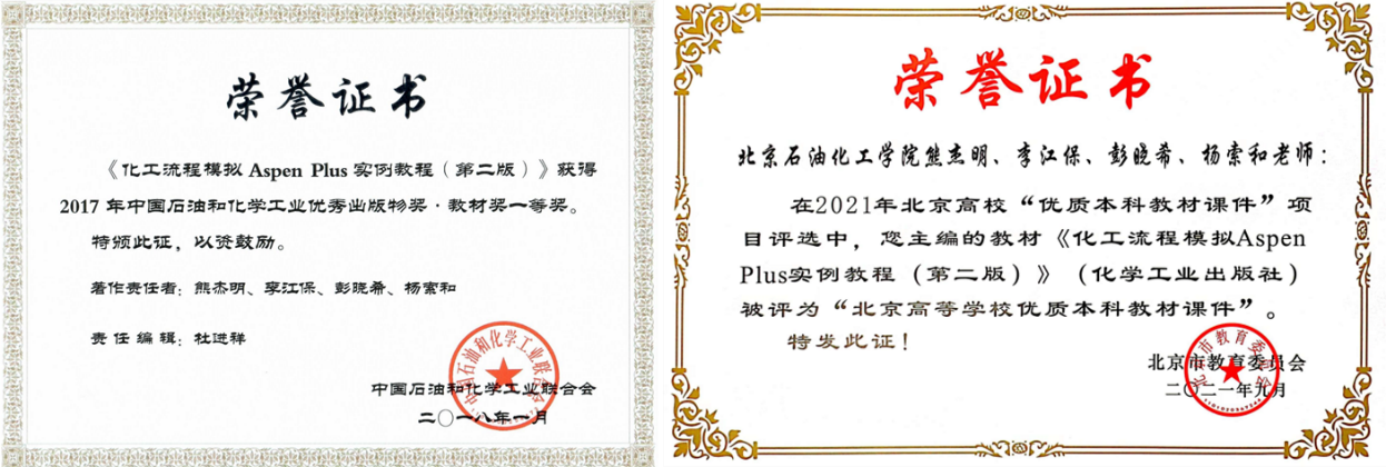 圖2 第二版教材所獲中國石油和化學工業聯合會及北京市獎勵
