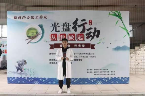 為深入貫徹習(xí)近平總書記關(guān)于堅決制止餐飲浪費行為的指示精神,大力弘揚中華民族勤儉節(jié)約的優(yōu)良傳統(tǒng),切實培養(yǎng)學(xué)生節(jié)約糧食習(xí)慣,在全校營造浪費可恥、節(jié)約為榮的氛圍,10月18日至22日,新材料與化工學(xué)院黨委開展了“我光盤,我光榮”為主題的光盤行動周活動。此次活動也是新材料與化工學(xué)院綠色護(hù)衛(wèi)隊長期堅持的特色活動之一,活動由學(xué)生第一黨支部承辦,學(xué)生第六黨支部協(xié)辦。