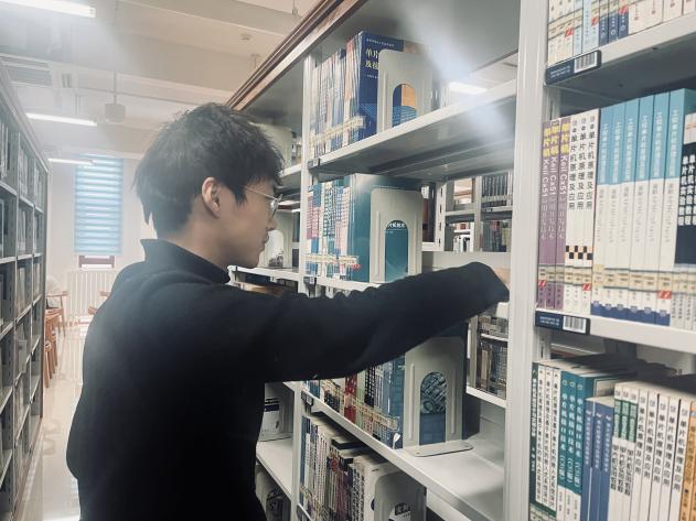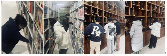 在圖書館,支部成員聆聽圖書館相關負責人介紹圖書館的部分職能與功能,對圖書館有了更加直觀、具體的了解。支部成員分頭行動,分別在圖書館一樓和五樓進行清潔工作,一樓的小組主要負責清理別樣吧附近的圖書館架以及盛放獎杯的架子,五樓的小組分為四組行動,對圖書館書架中各個角落的衛生進行清潔,支部成員全程保持安靜,一絲不茍地進行擦拭清潔工作,在稍加微涼的春日里為同學們帶來了一絲溫暖,創造一個更加整潔舒適的學習環境。