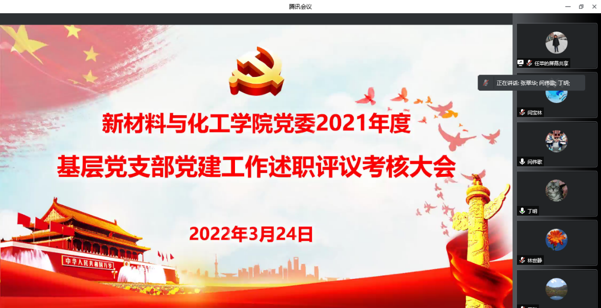 2022年3月24日,新材料與化工學院黨委在騰訊會議線上召開2021年度黨支部書記述職評議考核會。新材料與化工學院黨委委員、全體黨支部書記參加會議。學校正處級組織員丁明到會指導。會議由學院黨委副書記張翠華主持。