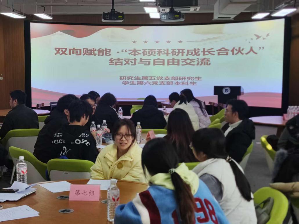 在“本碩科研成長合伙人”結(jié)對環(huán)節(jié),本科生黨支部書記張子豪老師主持并提出倡議,希望本研同學(xué)以本次活動為起點,在URT等項目中共建團隊、在科研實踐中深化交流,建立常態(tài)化互助機制。現(xiàn)場同學(xué)積極響應(yīng),圍繞課題選擇、實驗設(shè)計、學(xué)業(yè)規(guī)劃等展開熱烈討論,搭建起本研貫通的科研成長平臺。