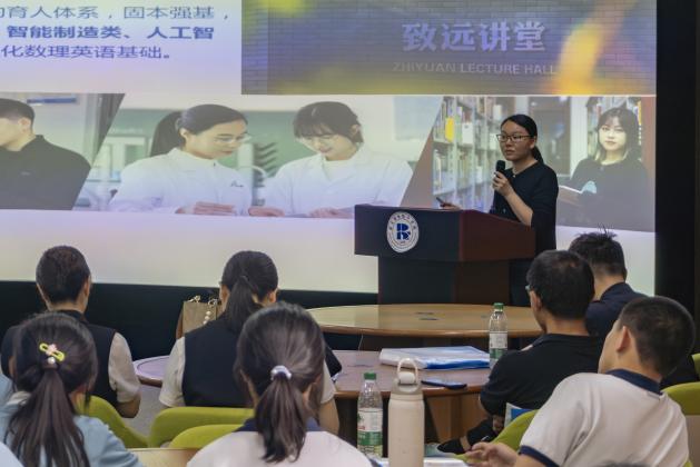 活動(dòng)一:學(xué)校介紹講座,由新材料與化工學(xué)院副院長(zhǎng)劉姍姍進(jìn)行學(xué)校整體情況介紹,以專業(yè)視角從學(xué)校整體情況、特色學(xué)科、專業(yè)優(yōu)勢(shì)等方面展開(kāi)詳細(xì)介紹,生動(dòng)的講解激發(fā)了同學(xué)們對(duì)大學(xué)的向往,為“1+3”貫通班同學(xué)們勾勒出未來(lái)大學(xué)生活的美好藍(lán)圖,也為招生宣傳工作打下堅(jiān)實(shí)基礎(chǔ)。