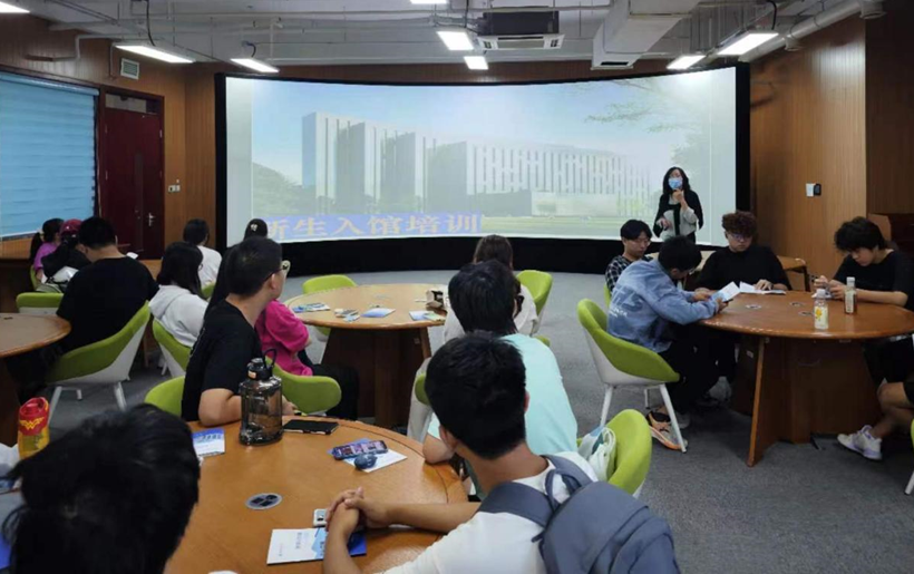 進入圖書館后,首先在圖書館402、602進行了新生入館培訓,圖書館各位老師從館情介紹、入館須知、資源布局、服務項目四個方面向同學們介紹。圖書館老師重點介紹了各類圖書的館藏分布、借閱流程、研討室預約、自助文印等內容,讓同學們系統全面的了解了圖書館,為學生充分利用圖書館資源提供了便利。