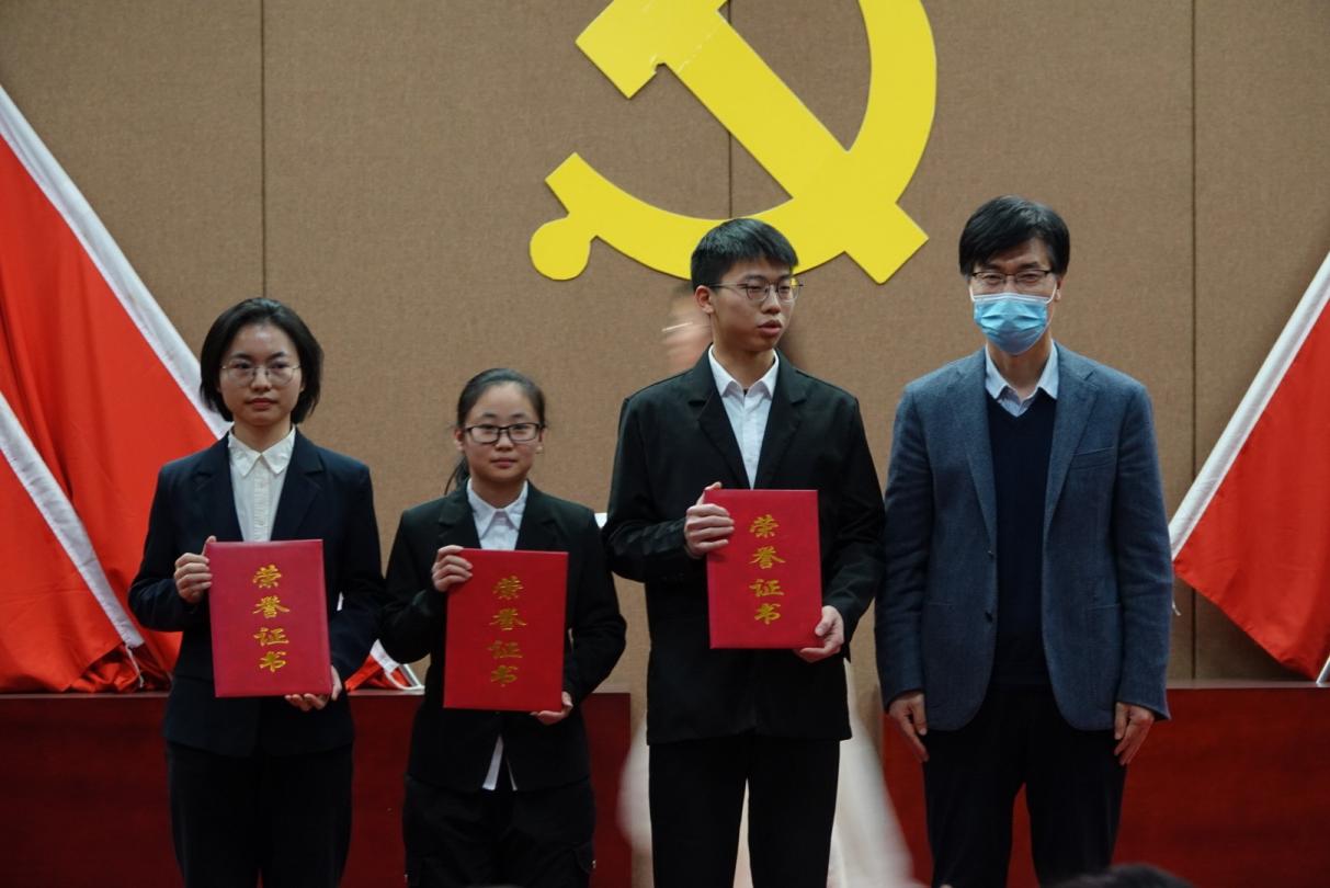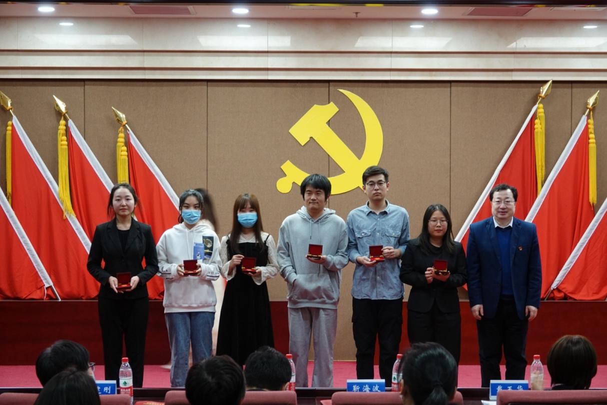 (靳海波院長為“慶祝中國共產黨成立一百周年大會”志愿者代表頒獎)