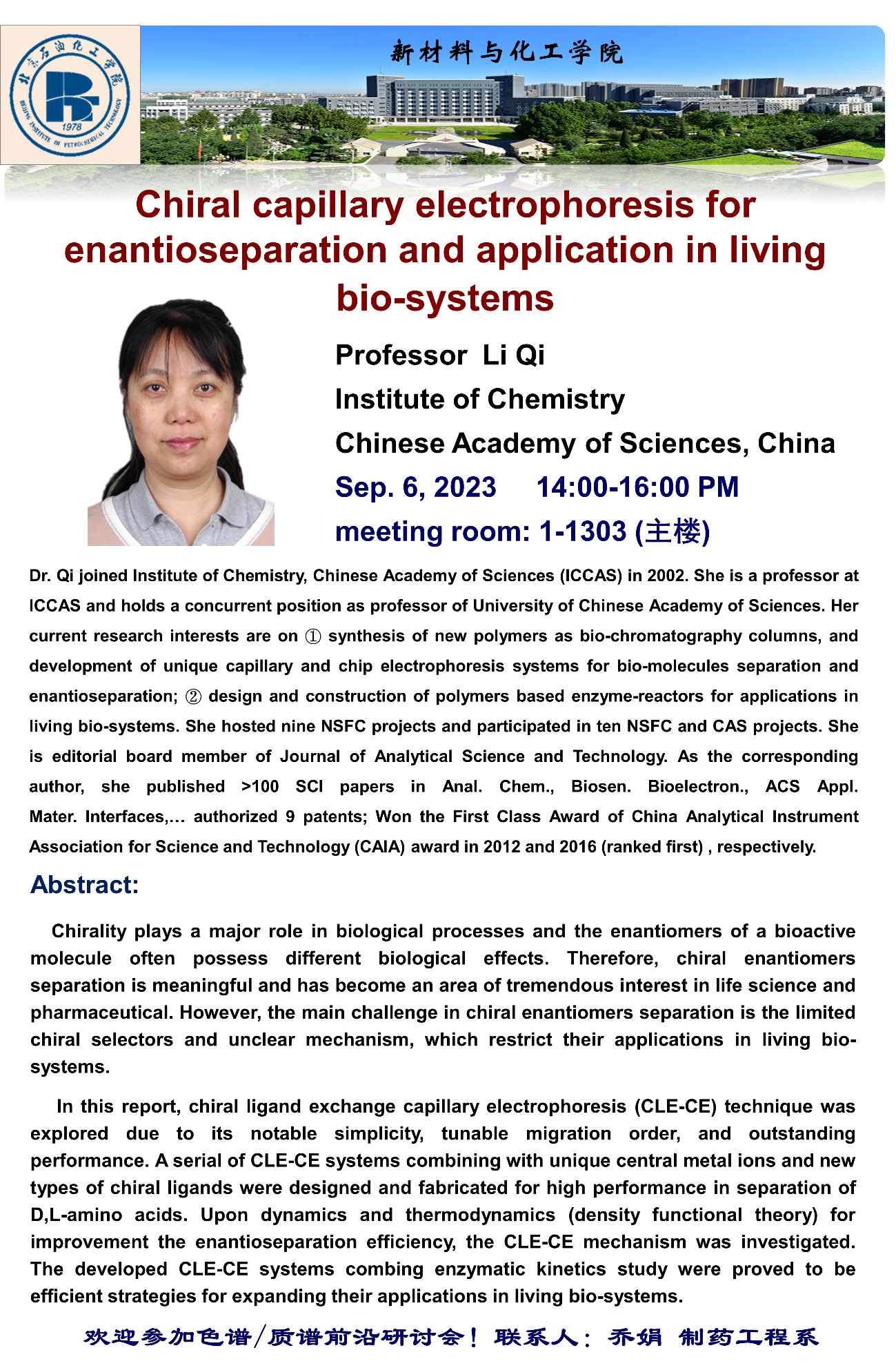 新材料與化工學院學術講座通知