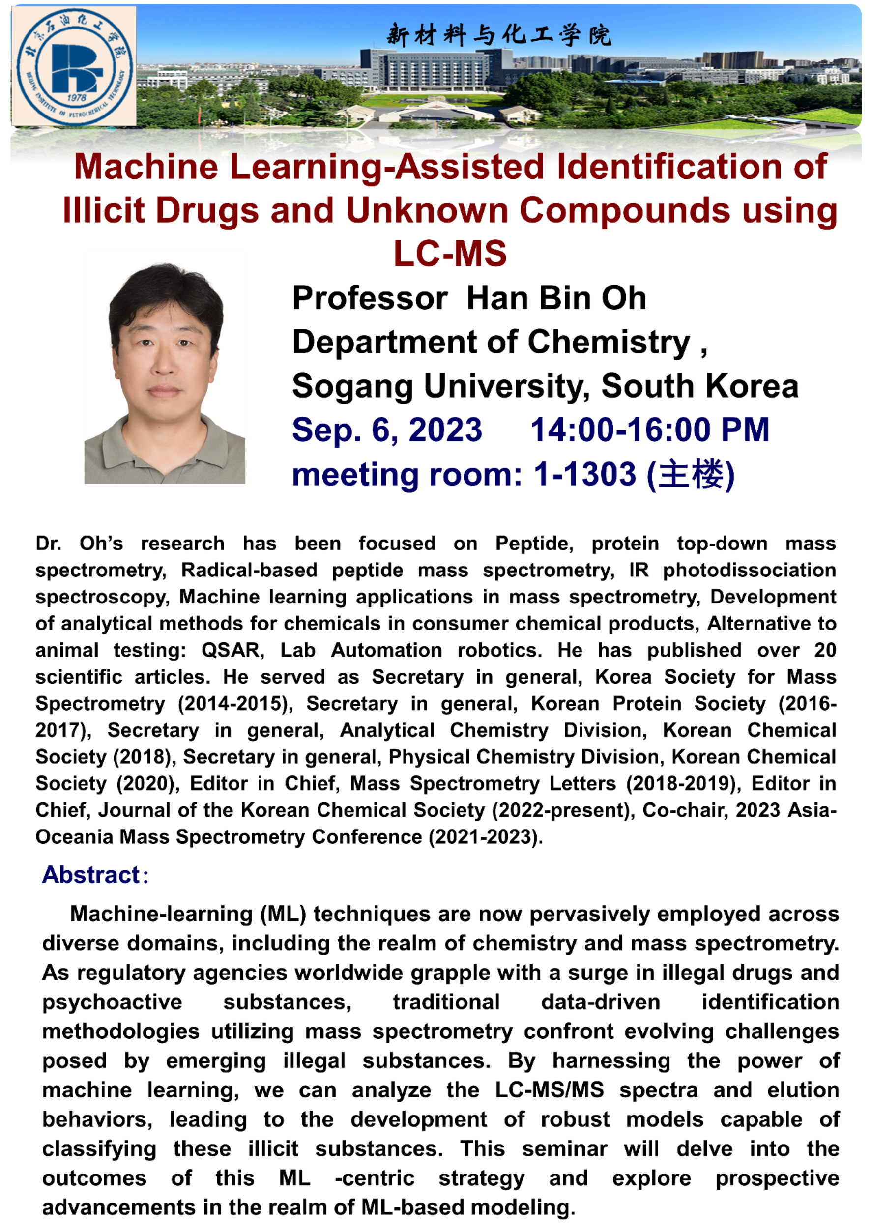 新材料與化工學院學術講座通知:色譜 質譜前沿研討會