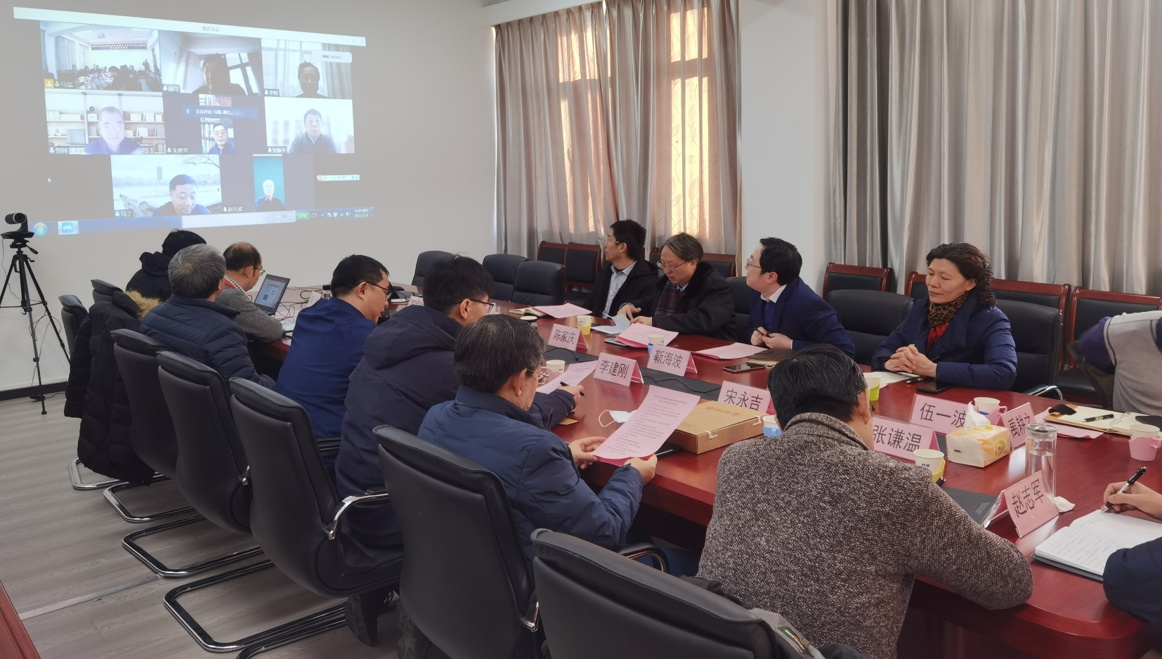 2022年1月6日,燃料清潔化及高效催化減排技術北京市重點實驗室(下稱重點實驗室)第一屆學術委員會第二次會議采用線上線下結合方式順利召開。重點實驗室學術委員會主任中國化工學會副理事長、秘書長華煒教授,副主任中石化石科院副院長聶紅教授、北京化工大學劉振宇教授,以及學術委員會各位委員中國石油大學朱建華教授、北京航空航天大學郭林教授、北京理工大學趙天波教授、北京大學馬丁教授等線上參會。我校副校長陳家慶教授,副校長、重點實驗室主任靳海波教授,學術委員會委員羅明生教授及李翠清教授,新材料與化工學院副院長伍一波教授、李建剛教授、何廣湘教授,科技處張勝紅副處長以及重點實驗室相關教師代表等在學校主樓1304會議室參會。會議由重點實驗室學術委員會主任華煒教授主持。