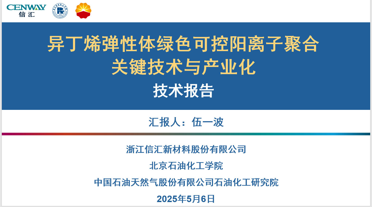 2025年5月6日,浙江武林新產品新技術鑒定中心組織召開科技成果鑒定會,對由浙江信匯新材料股份有限公司牽頭組織,北京石油化工學院、中國石油天然氣股份有限公司石油化工研究院聯合完成的“異丁烯彈性體綠色可控陽離子聚合關鍵技術與產業化”進行了成果鑒定,我校新材料與化工學院院長伍一波教授為該項目的第一完成人。