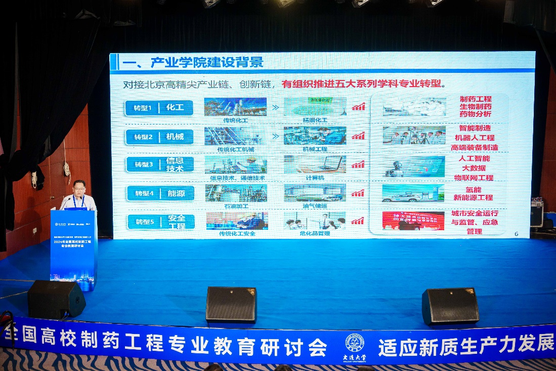 7月19日至21日,2024年全國高校制藥工程專業教育研討會在遼寧省大連市舉辦。我校教務處處長王騰作為教育部制藥虛擬教研室負責人,代表學校在會上做了題為“生物醫藥健康產業學院建設的探索和實踐”的報告,獲得廣泛好評。