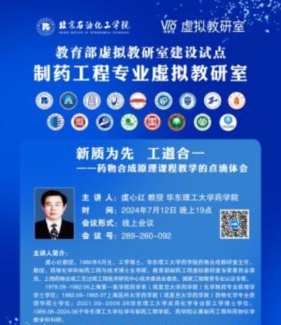 7月12日,我校制藥工程虛擬教研室順利組織舉辦了2024年度制藥工程名師示范課,會議由我校教務處處長、制藥工程虛擬教研室負責人王騰主持。華東理工大學藥學院虞心紅教授做題為《新質為先,工道合一——藥物合成原理課程教學的點滴體會》的示范教學。本次示范課吸引了全國各地眾多高校的同行老師參加,會議通過騰訊會議的方式進行。