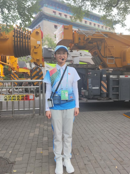 非常榮幸成為九三閱兵重大活動的志愿者。活動期間,我的核心任務是引導觀眾、維護秩序與提供及時幫助。每一次微笑、每一次指引,都是保障活動有序開展的一環(huán)。從崗前培訓到現(xiàn)場配合,讓我懂得了責任與協(xié)作的真正意義。這次經(jīng)歷,是我成長路上的寶貴財富,它讓我更加堅定了用行動傳遞溫暖、以責任擔當使命的信念。