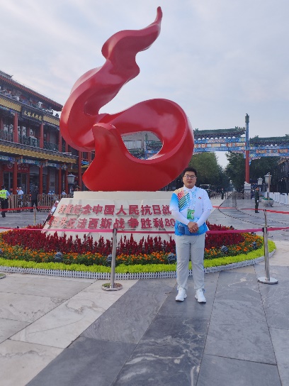 服務期間,每名志愿者都以飽滿的精神狀態(tài)和嚴謹認真的工作態(tài)度完成每一項任務,我深刻領悟到一場盛大活動的圓滿落幕,從不是臨場的幸運,而是籌備期無數(shù)個細節(jié)堆砌出的必然。紀念大會于我而言是志愿服務與民族自豪的有機融合,是廣大青年奮勇前進的有力旗幟,是我國為人類和平與發(fā)展的崇高事業(yè)作出的更大貢獻。我作為新時代的首都青年,將從偉大勝利中汲取奮勇前進的力量,跟隨黨的前進步伐,傳承英雄血脈,賦能未來,開創(chuàng)未來!