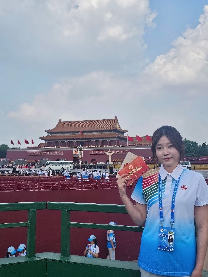 何其有幸成為其中一員參與到國家的重大活動中,可以近距離感受到祖國的強大!通過此次培訓,我結識了許多來自不同學院優(yōu)秀同學和老師。在與大家的交流中,我不僅拓寬了視野,更見識到了諸多值得學習的榜樣。他們身上的閃光點,深深激勵著我不斷向前,也讓我更加堅定——要努力成長,持續(xù)進步,爭取有一天,我也能像他們一樣優(yōu)秀!祝祖國繁榮昌盛,自立自強!