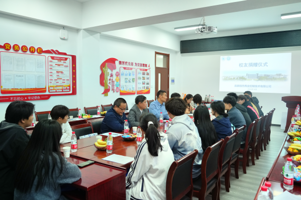 隨后,學(xué)院在主樓1303會議室舉行了校友捐贈儀式。1993級本科生校友李潤波為學(xué)院捐贈人民幣10萬元,并與同學(xué)們進行了親切交流。