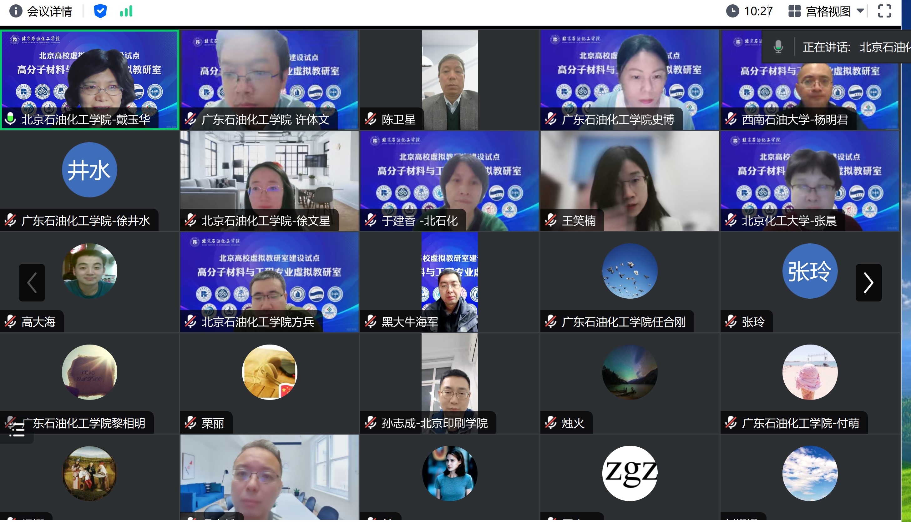 最后,戴玉華教授總結(jié)發(fā)言。對王老師的精彩分享和大家的積極參與表示感謝。同時指出,AI融入教育領(lǐng)域的發(fā)展正如火如荼展開,作為高校老師如何借助AI賦能提高人才培養(yǎng)能力、科學(xué)研究能力需要老師們認真思考,并不斷學(xué)習(xí)。以虛擬教研室這一新型教學(xué)組織為載體,15所高校的高分子材料與工程專業(yè)將繼續(xù)加強交流與合作,共同提高AI賦能的能力與水平。