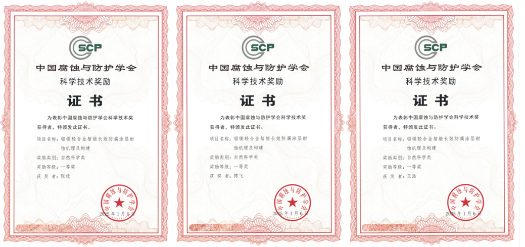 榮獲中國腐蝕與防護學會科學技術獎一等獎