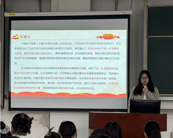 郭雨晴同學(xué)還播放《解讀黨的二十屆三中全會(huì)精神---深化教育綜合改革》和《學(xué)習(xí)貫徹黨的二十屆三中全會(huì)精神--以昂揚(yáng)斗志奮力書(shū)寫(xiě)改革新答卷》兩部短片,讓大家深刻地認(rèn)識(shí)到要不斷提升自身的綜合素質(zhì),特別是創(chuàng)新能力和實(shí)踐能力,以適應(yīng)國(guó)家戰(zhàn)略需求和社會(huì)發(fā)展。