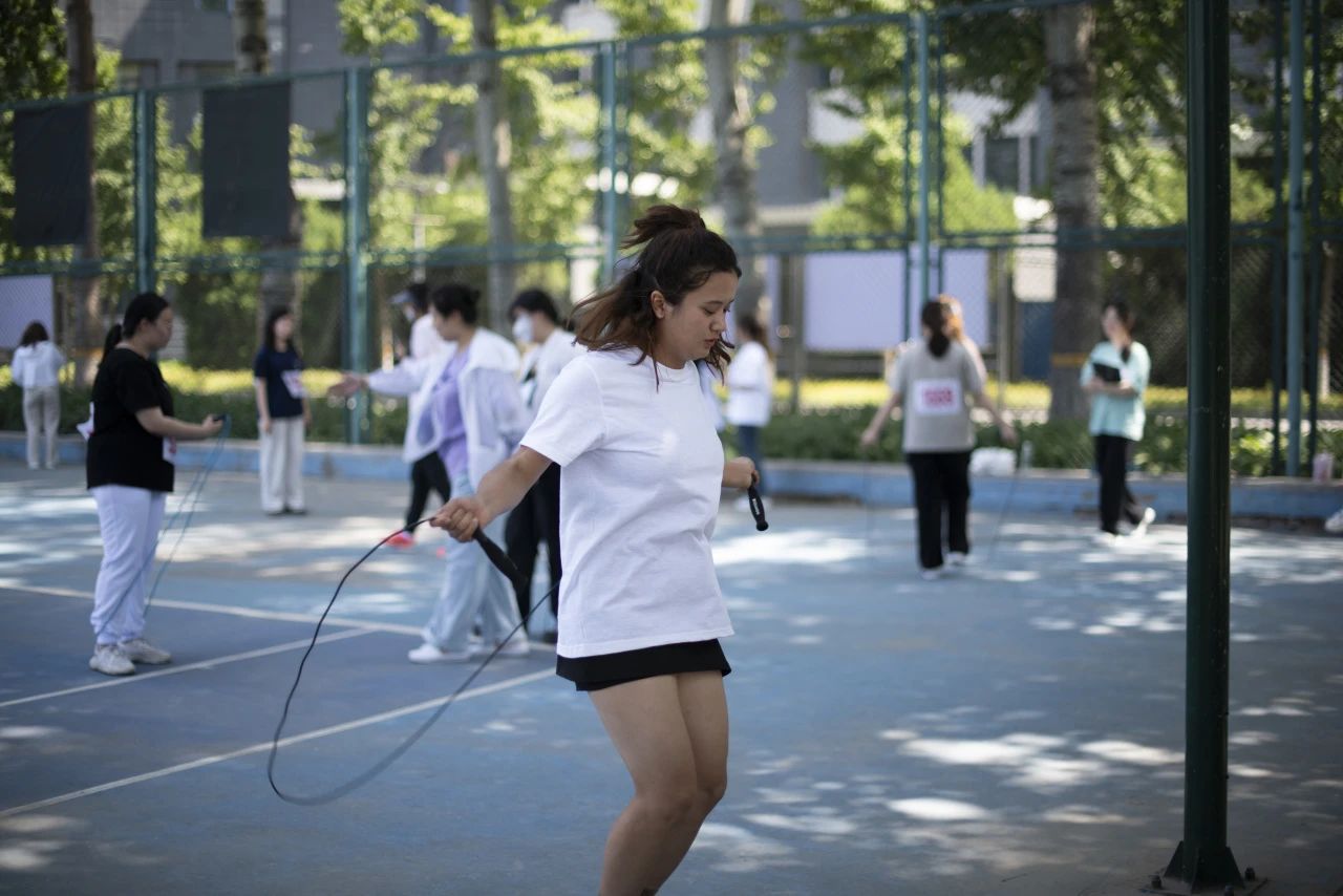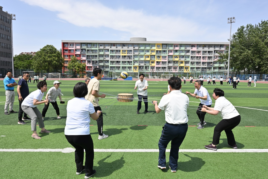 運動會設立同心鼓、集體8字跳繩、抱球接力賽等集體項目,設立沙包擲準、飛鏢、擲球入筒、踢毽、跳繩等個人項目。項目充滿趣味性、挑戰性,精彩紛呈的競技場面不斷呈現,每位教師臉上都洋溢著燦爛的笑容。