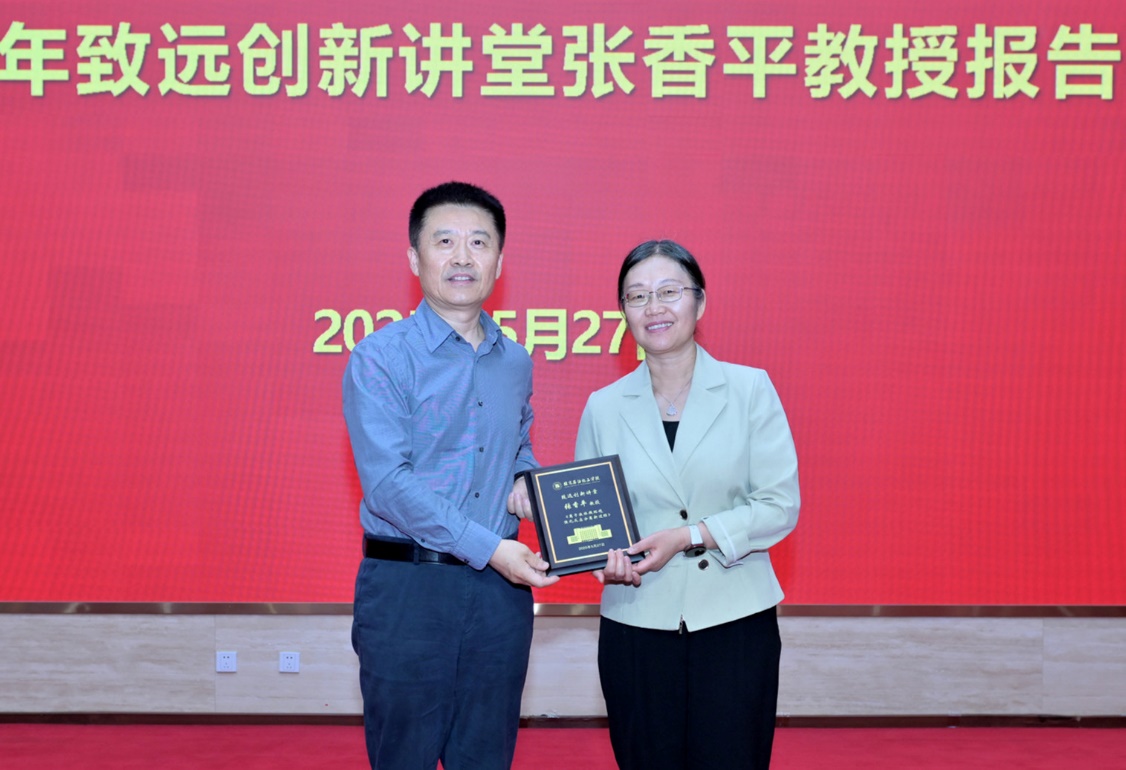 報告結束后,付紅兵副校長向張香平教授贈送了“致遠創新講堂”致謝留念牌。現場師生還就科研團隊建設、科研方向的選擇等問題向張教授提問,張教授一一解答并與師生進行了親切的互動和交流。