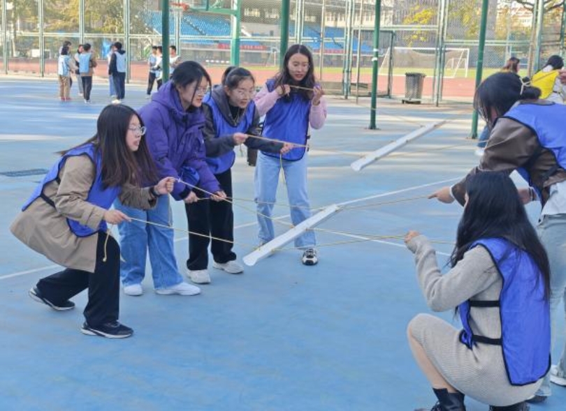 此次活動形式多樣,包括熱身、破冰、組隊、競技和集體游戲等部分,開展了“破冰起航”“百人戰鼓”“管道奇兵”“動力繩圈”等考驗團體協作精神的趣味項目。同學們在這些環節中逐漸熟悉,加深了解,增強了團隊歸屬感,體會到協作的重要性,在合力攻關中展示了團隊精神,為今后集體學習生活筑牢根基。