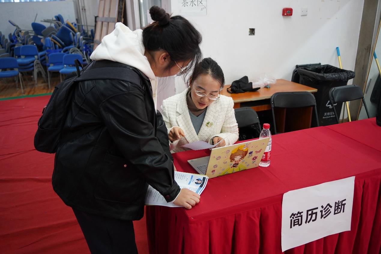 我校啟明星就業指導名師工作室張利敏老師在招聘現場給畢業生提供了簡歷診斷服務。