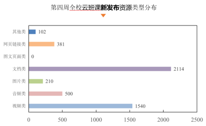 2、2019-2020學年春季學期第四周,全校云班課新發布資源4847個,較上周增加74個,環比增長2%。