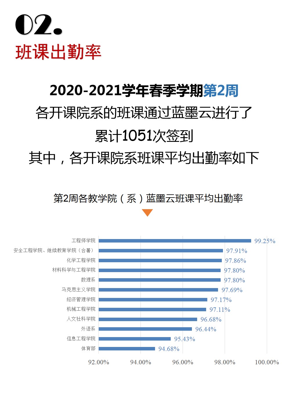 2020-2021學年春季學期第二周藍墨云到課率統計數據