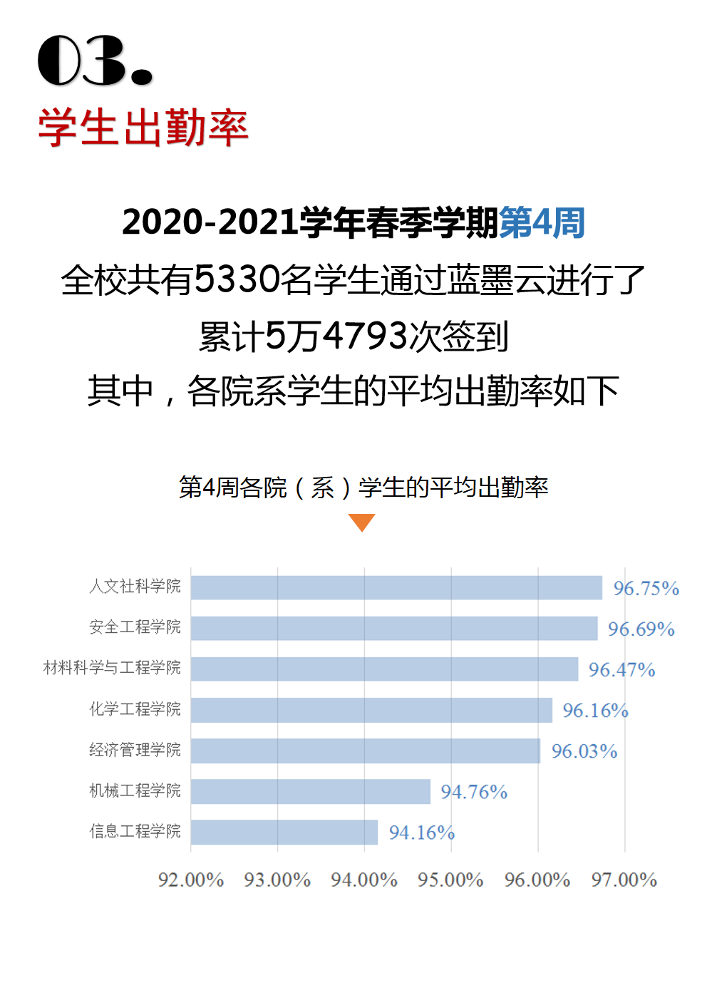 2020-2021學(xué)年春季學(xué)期第四周藍(lán)墨云到課率統(tǒng)計(jì)數(shù)據(jù)