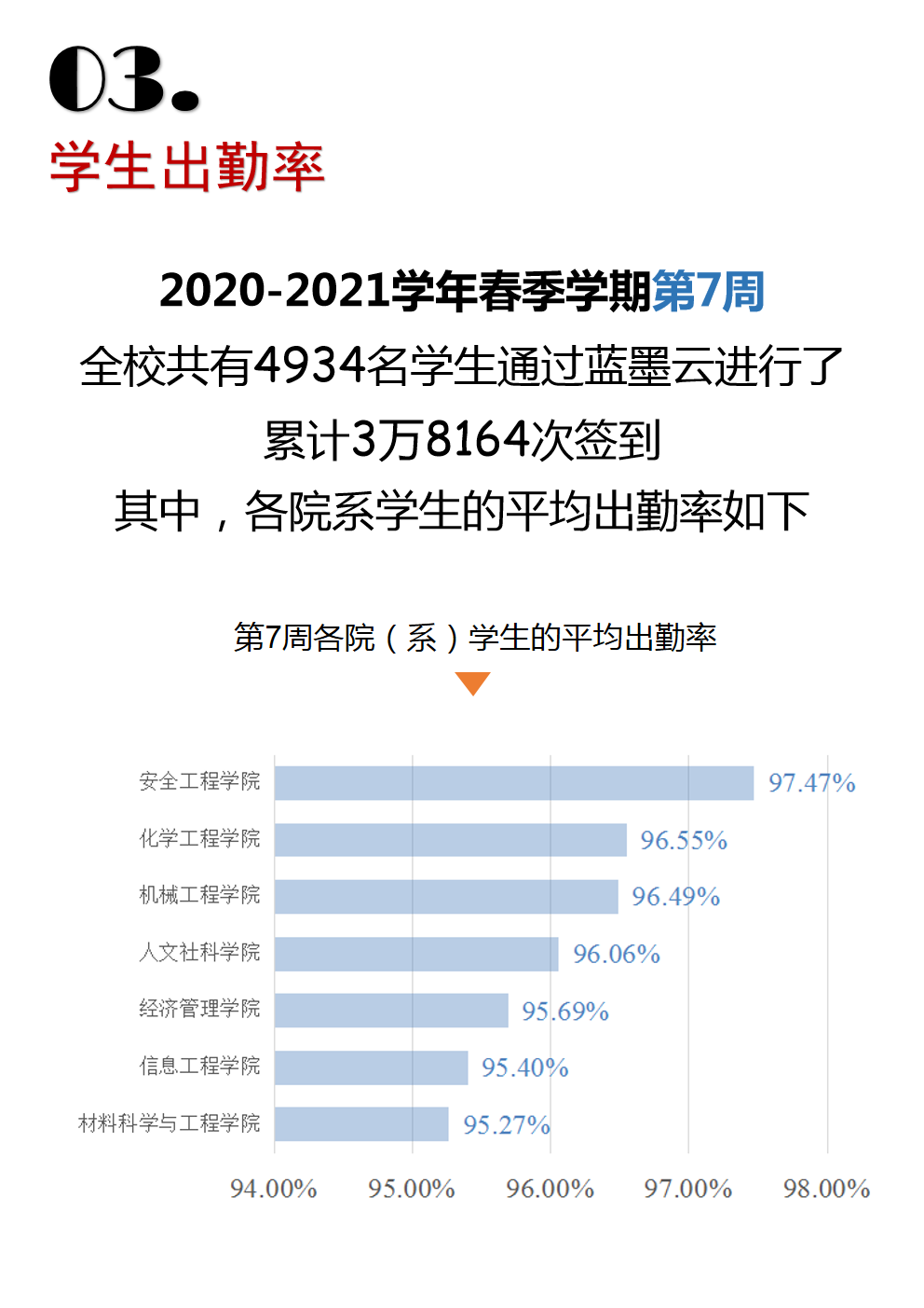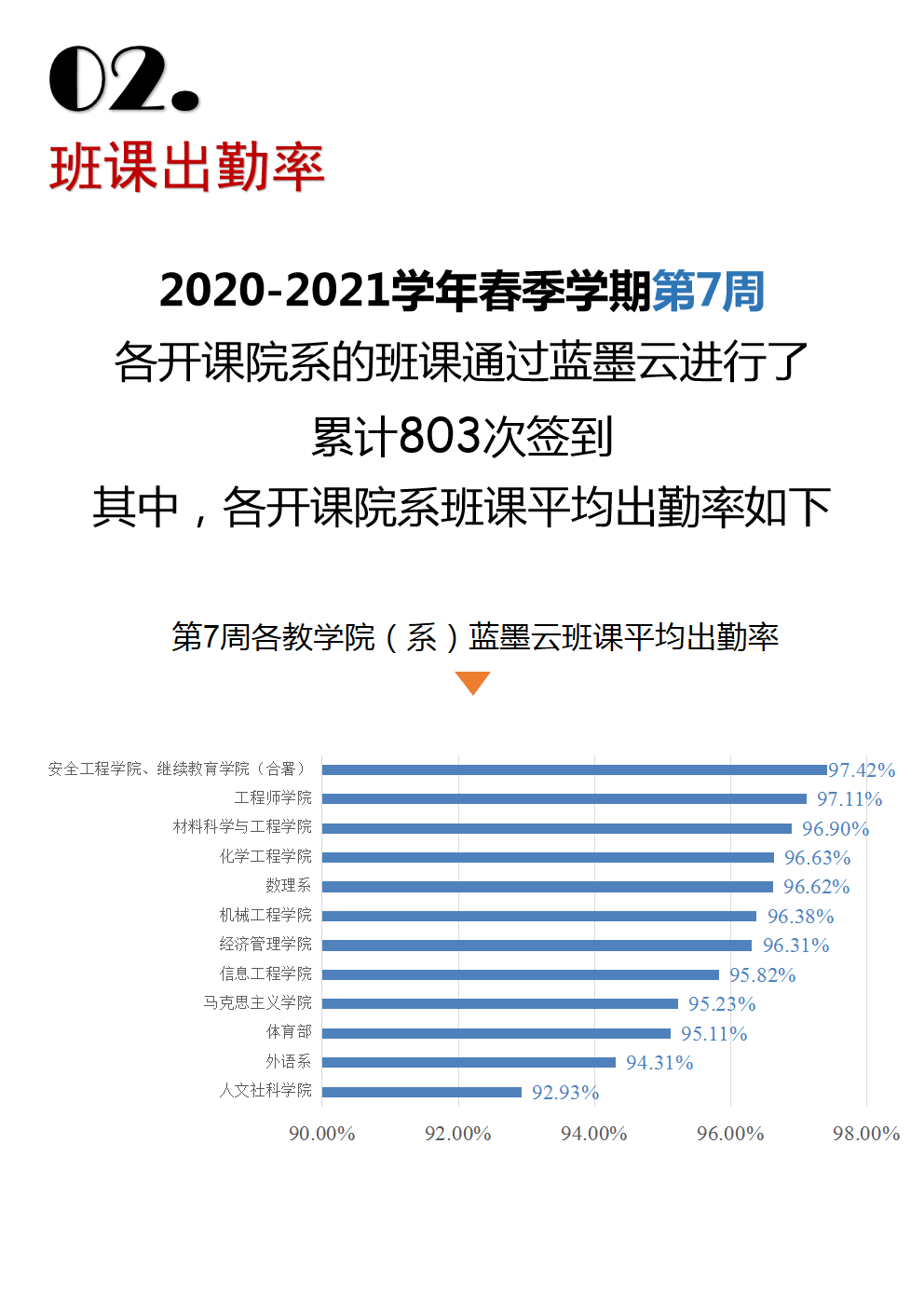 » 2020-2021學年春季學期第七周藍墨云到課率統計數據