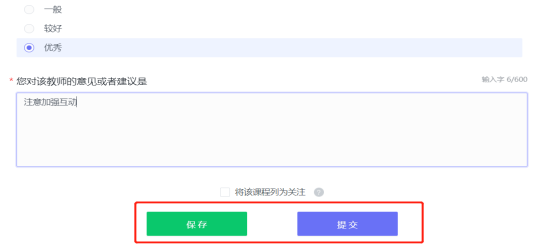 填寫(xiě)并提交評(píng)價(jià)問(wèn)卷。認(rèn)領(lǐng)任務(wù)后關(guān)閉界面返回任務(wù)單界面,直接評(píng)價(jià)任務(wù)單中的課程,問(wèn)卷填寫(xiě)完成后可立即提交,也可先保存,待后續(xù)確認(rèn)無(wú)誤后再提交。提交評(píng)價(jià)問(wèn)卷后,在已評(píng)價(jià)列表中,可以查看、修改或者刪除評(píng)教結(jié)果。