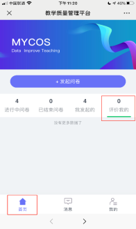 5.查看評(píng)價(jià)結(jié)果。在【評(píng)價(jià)我的】中篩選問(wèn)卷類型,查看問(wèn)卷得分和詳情。