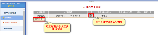 學生端: 登錄教務在線個人賬戶,點擊學分互認-校內學生申請選擇相應的替代項目