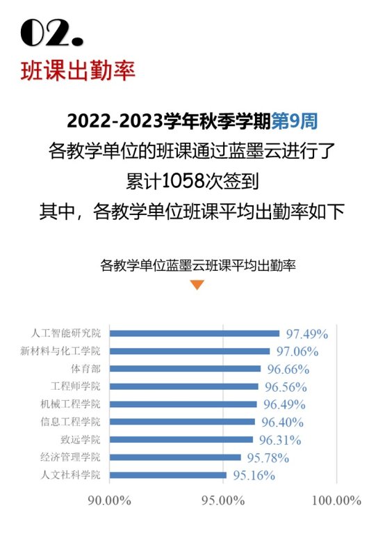 2022-2023學年秋季學期第九周藍墨云到課率統計數據