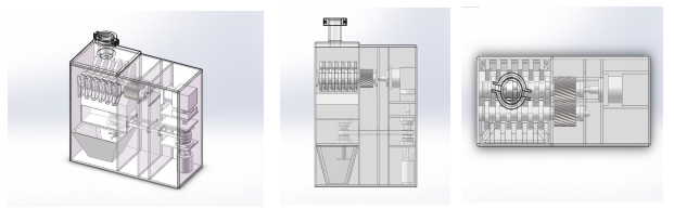 項(xiàng)目簡介:《“碎”廢逐污煥新居—城鄉(xiāng)家庭用超高效廚余垃圾粉碎設(shè)備》與二十大報(bào)告中強(qiáng)調(diào)落實(shí)城市更新行動(dòng)的要求相結(jié)合。目前,城鄉(xiāng)老舊小區(qū)、農(nóng)房由于當(dāng)時(shí)的設(shè)計(jì)規(guī)劃標(biāo)準(zhǔn)低,現(xiàn)已暴露出許多問題,經(jīng)過線下調(diào)研,發(fā)現(xiàn)下水道堵塞問題在這類住戶中無一幸免。村居民還往往將廚余垃圾直接填埋或傾倒至河流污染環(huán)境。基于這種情況,我們團(tuán)隊(duì)推出了一款新型廚余垃圾粉碎機(jī),設(shè)計(jì)了超高效二次粉碎裝置,一次粉碎裝置可以將骨頭等較大較硬的物體進(jìn)行粉碎,二次粉碎裝置可以把第一次粉碎完成的產(chǎn)物進(jìn)行進(jìn)一步的粉碎,以通過減小垃圾尺寸,降低生物降解難度,提高垃圾清除效率的目的。