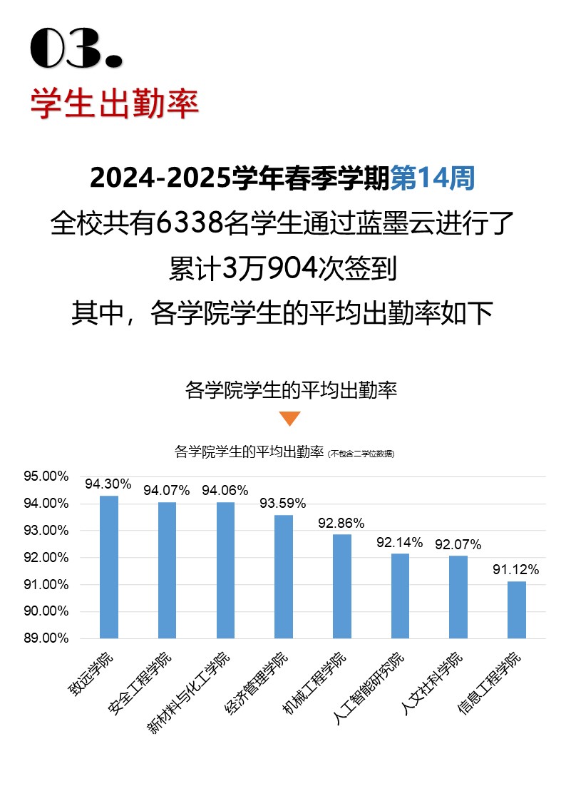 » 2024-2025學(xué)年春季學(xué)期第十四周藍(lán)墨云到課率統(tǒng)計(jì)數(shù)據(jù)