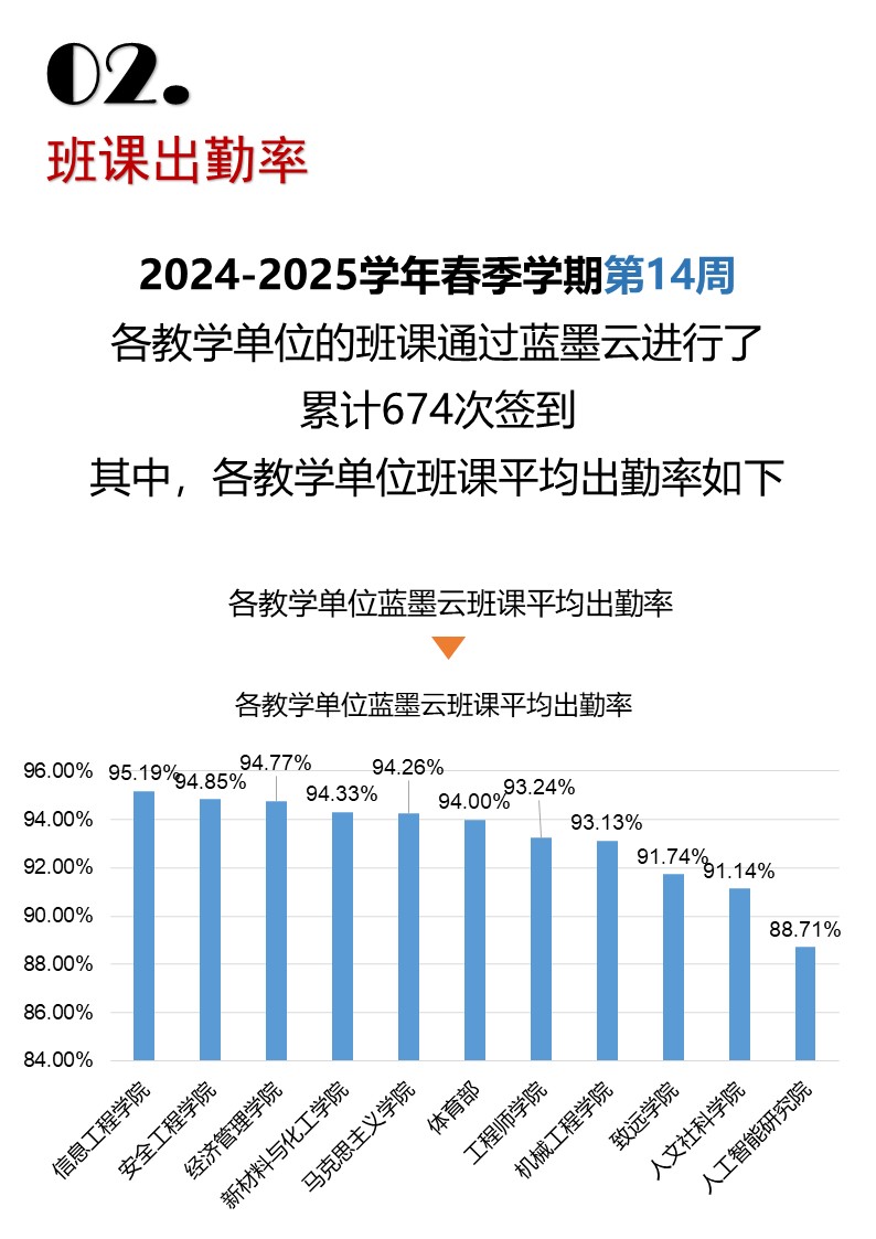 2024-2025學(xué)年春季學(xué)期第十四周藍(lán)墨云到課率統(tǒng)計(jì)數(shù)據(jù)