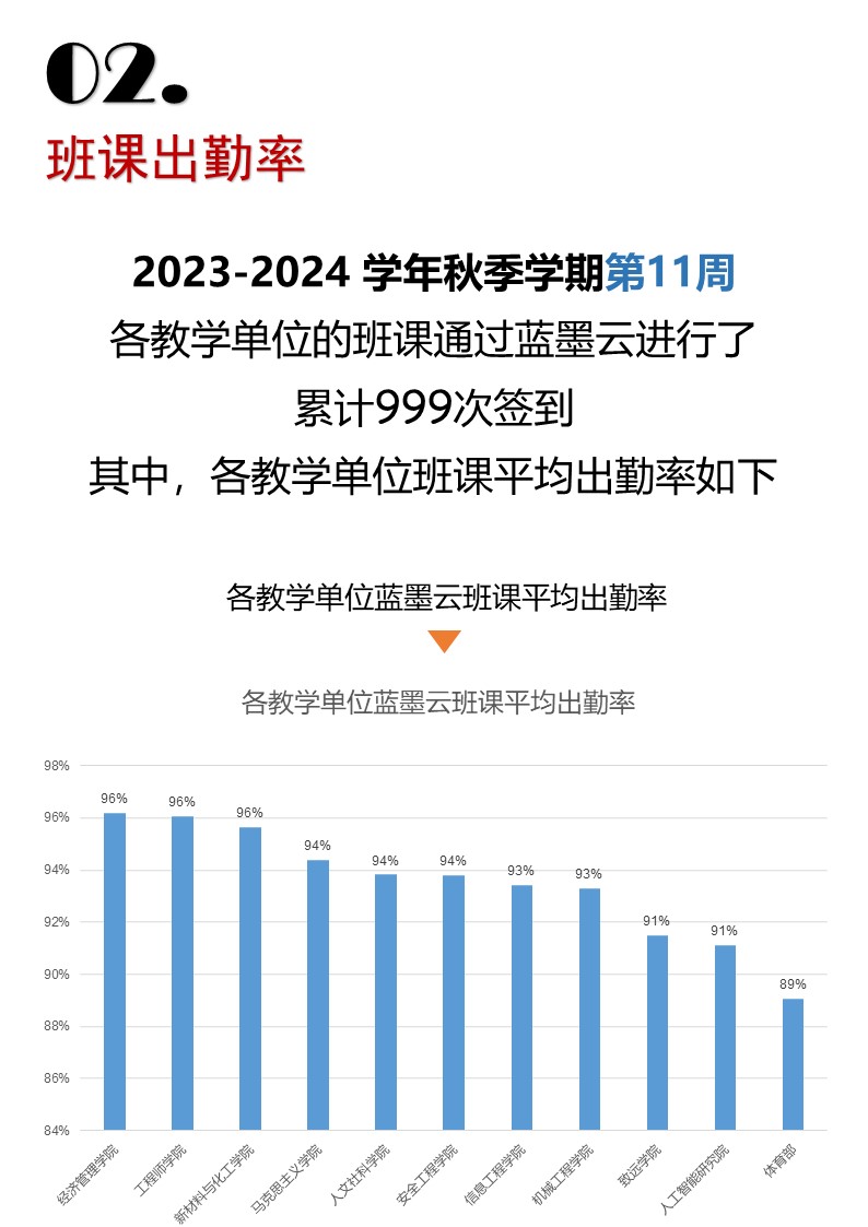 » 2023-2024學(xué)年秋季學(xué)期第十一周藍(lán)墨云到課率統(tǒng)計(jì)數(shù)據(jù)