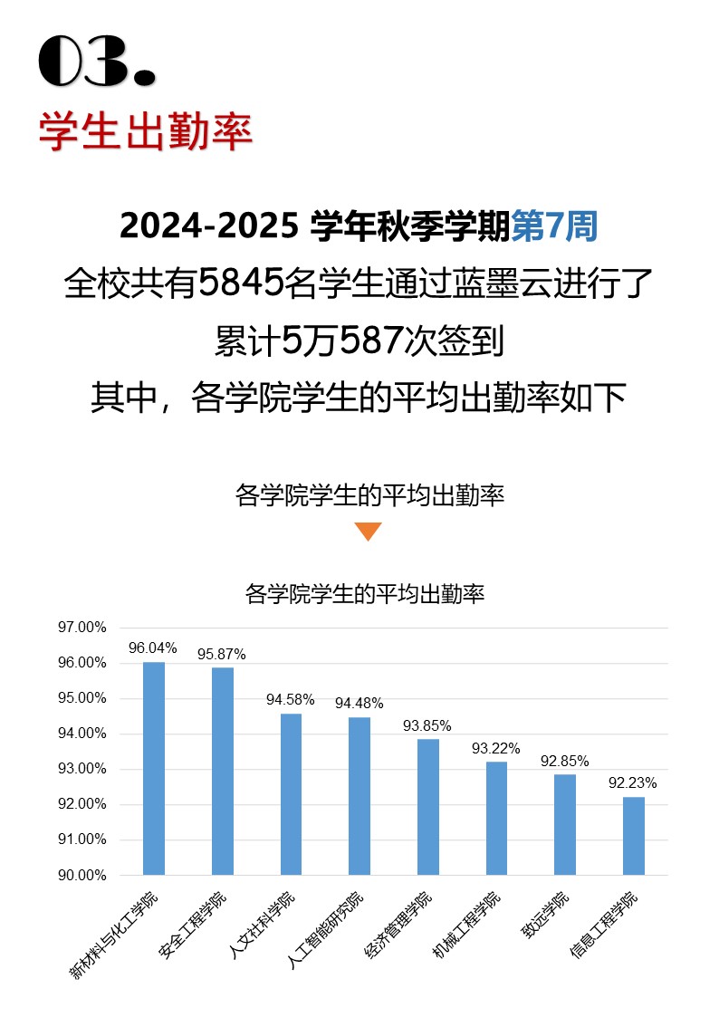 2024-2025學(xué)年秋季學(xué)期第七周藍(lán)墨云到課率統(tǒng)計(jì)數(shù)據(jù)