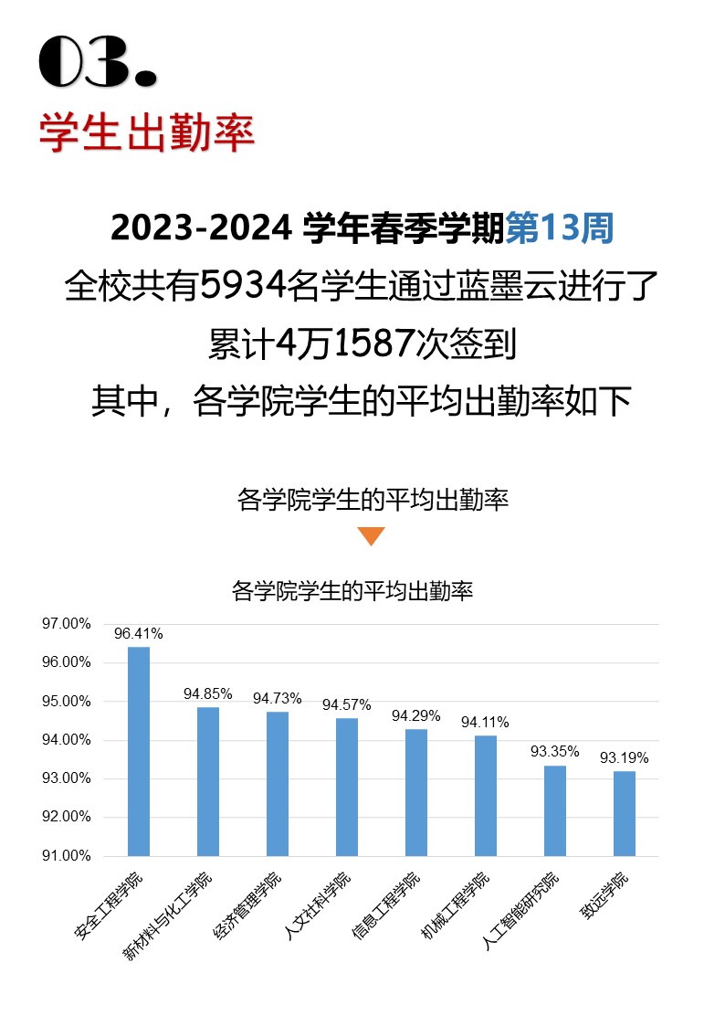 » 2023-2024學年春季學期第十三周藍墨云到課率統計數據