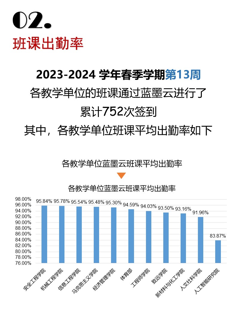 2023-2024學年春季學期第十三周藍墨云到課率統計數據