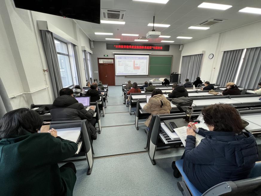 2月15日上午,教務處在主樓2501教室組織教師參加教育部教育質量評估中心在線開展的“本科教育教學質量監測體系建設”專題培訓會。教學管理領導工作小組成員、相關專業負責人、教師,教學管理人員等60余人參加了培訓會。