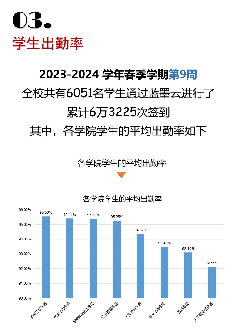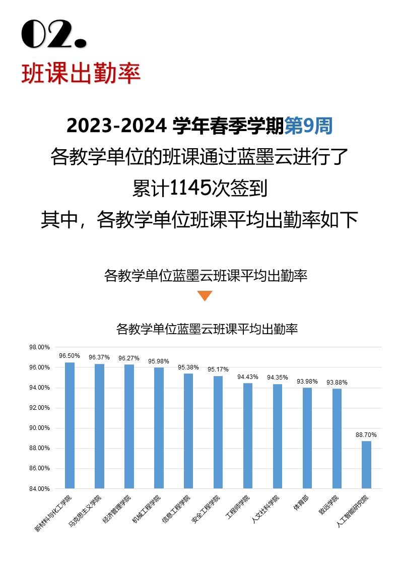 » 2023-2024學(xué)年春季學(xué)期第九周藍(lán)墨云到課率統(tǒng)計數(shù)據(jù)